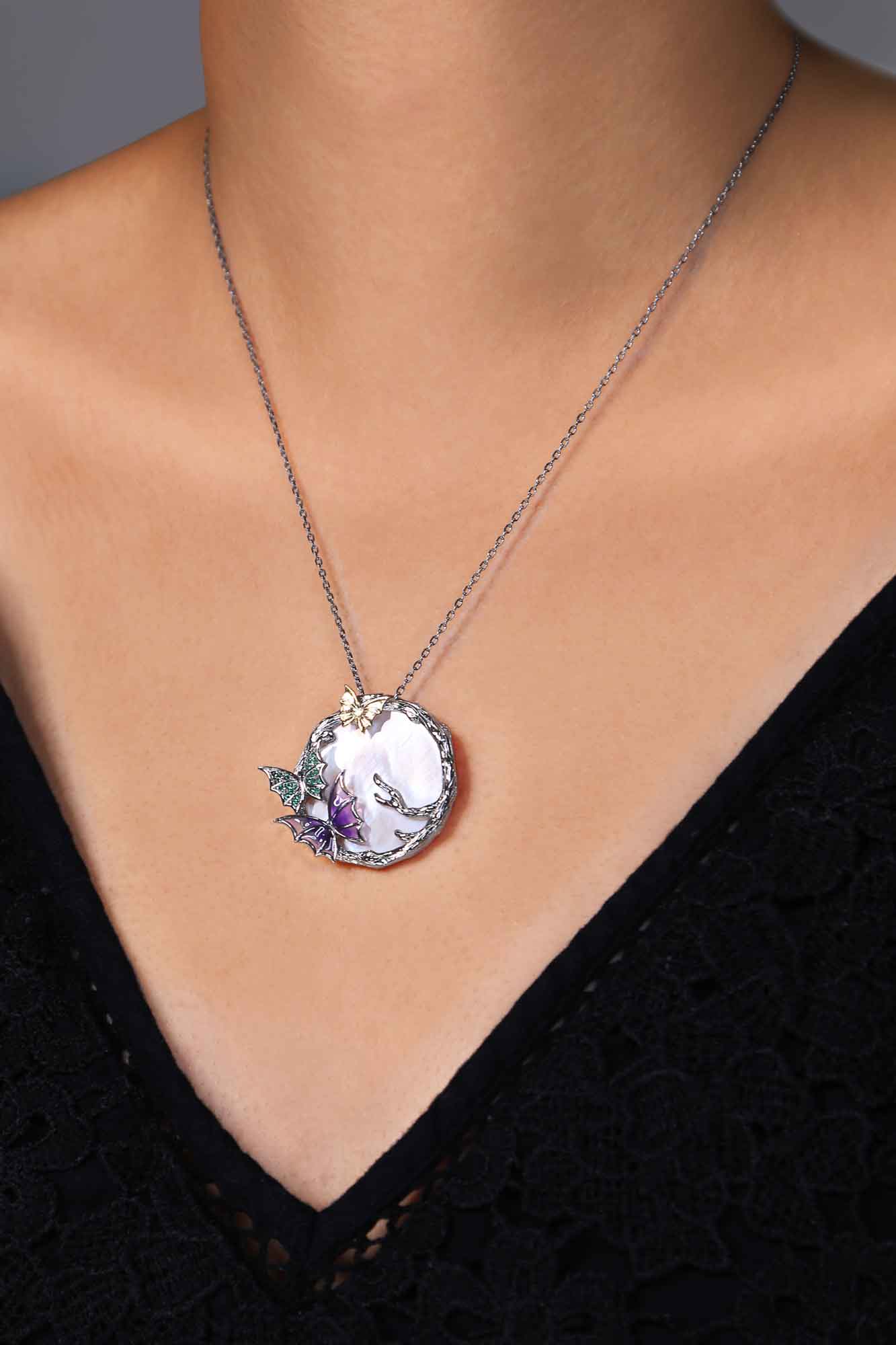 The Sparkling Butterfly pendant necklace has a deep and powerful meaning. The butterfly symbolizes hope and life.