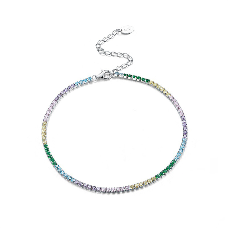 The rainbow crystal tennis anklet will add a color and shine to your steps.